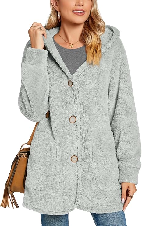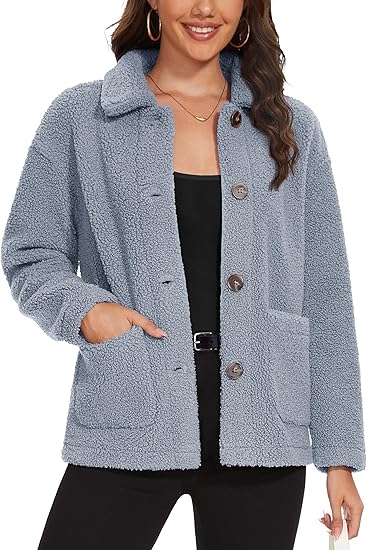Womens Sherpa Fleece Jackets Fuzzy Warm Winter Jackets Button Down Coat Long Sleeve Outwear with Pockets