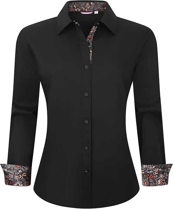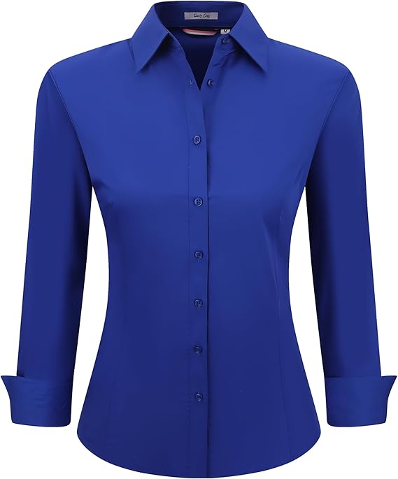 Womens Dress Shirts Cotton Long Sleeve Regular Fit Stretch Button Down Blouse