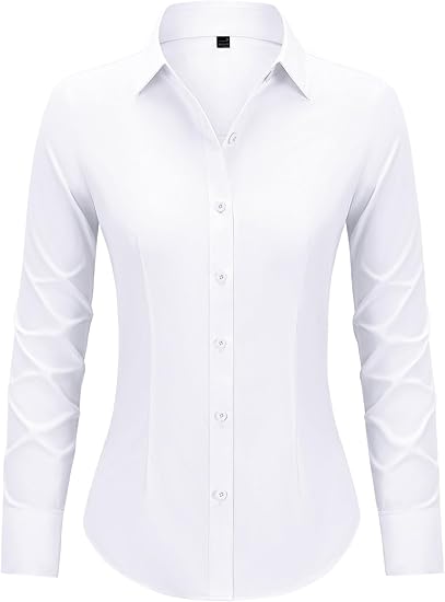 Button Down Shirts for Women Fitted Dress Shirts Collared Long Sleeve Soft Wrinkle Free Blouses Work Office Tunic Tops