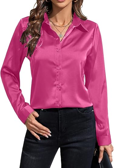 Women's Satin Button Down Shirts: Long Sleeve Classic Collared Silk Button Up Blouses Casual Work Tops