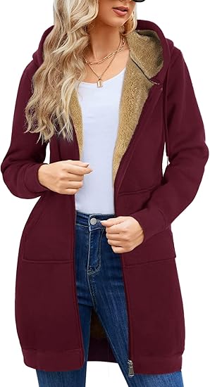 Zip Up Hoodies for Women Fleece Jackets Long Warm Hoodie Womens Hooded Tunic Sweatshirt Winter Coats with Pockets